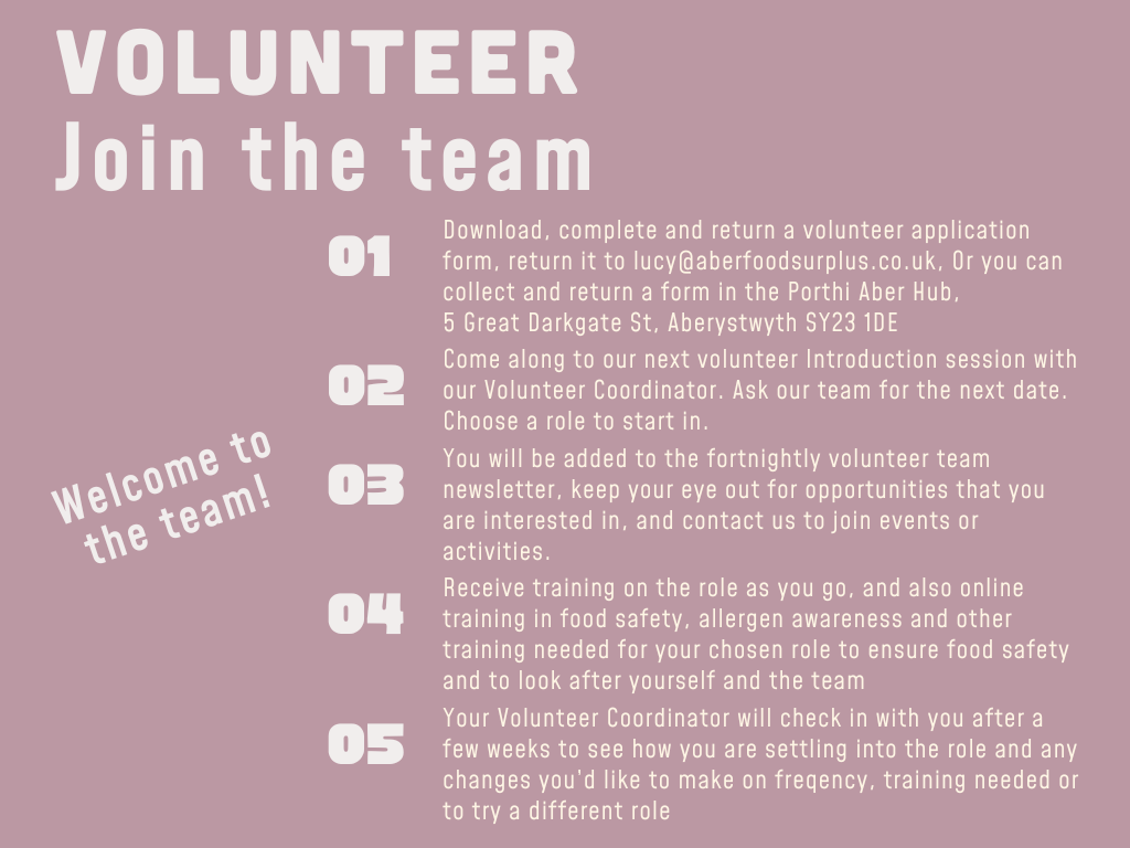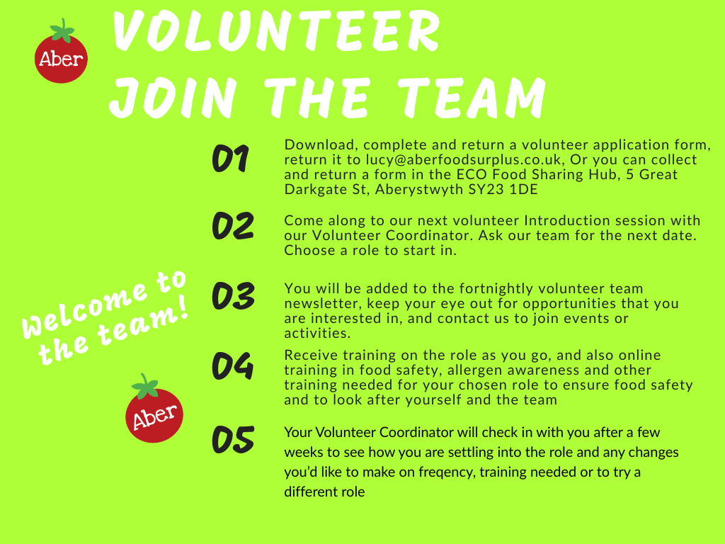 Return to: lucy@aberfoodsurplus.co.uk, or the Hub